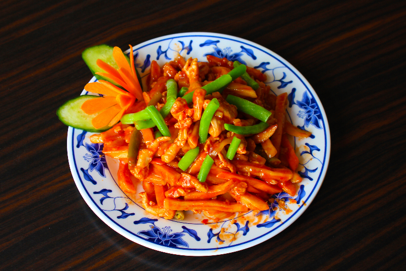 A menühöz főtt rizs jár köretként, helyette választható: